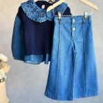 Ensemble 3 pièces : Chemise & Pantalon en Jean + Gilet en crochet