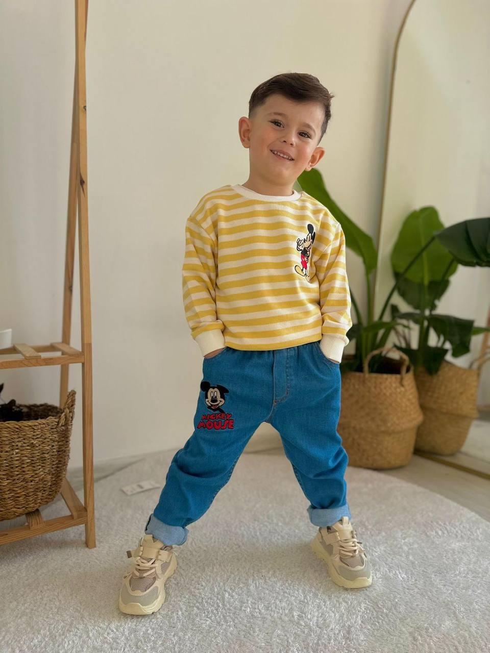 Ensemble 2 pièces Mickey Mouse coloré : Pantalon Jean bleu & Pull en coton avec rayures