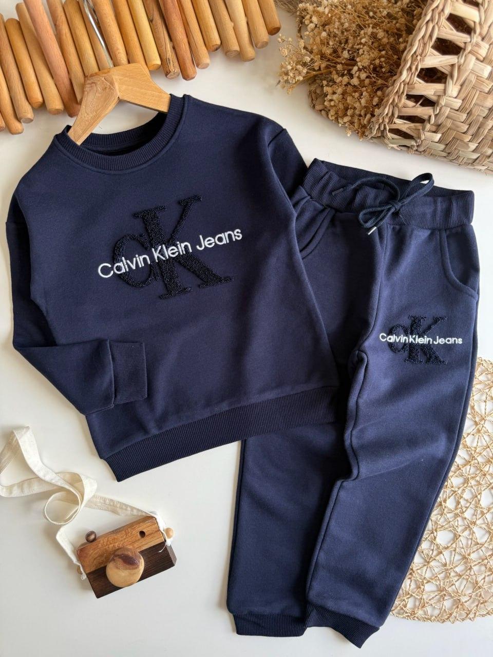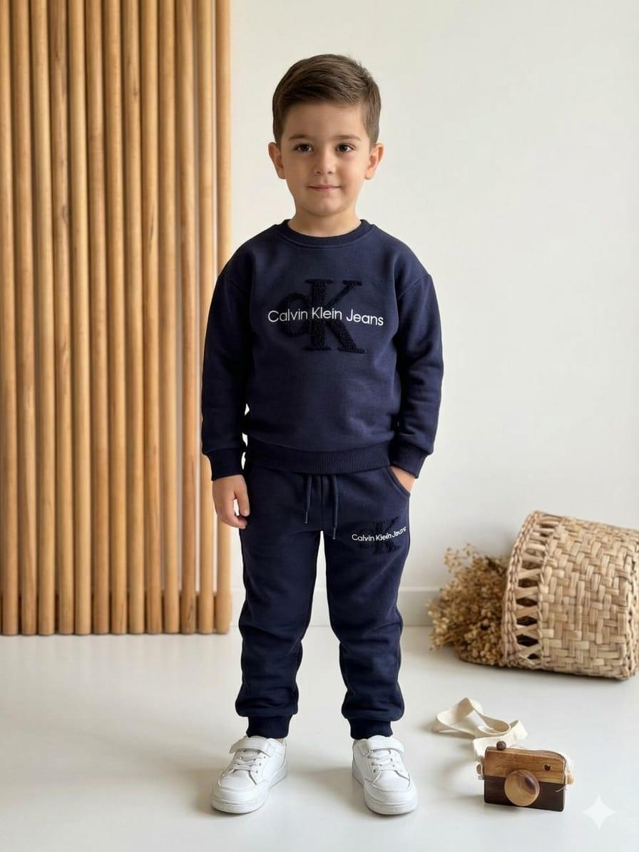 Pull et pantalon d'une couleur unie avec une gravure sur la poitrine et le pantalon
