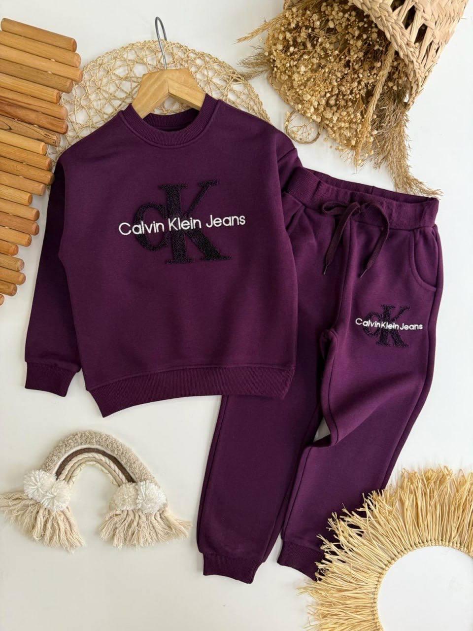 Pull et pantalon d'une couleur unie avec gravure sur la poitrine et pantalon
