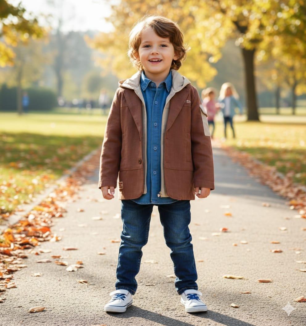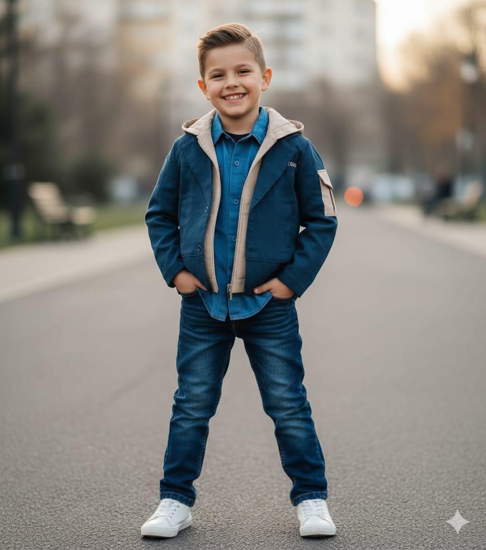 Ensemble 4 pièces : veste en lin épais + gilet avec capuche + chemise et pantalon en jean