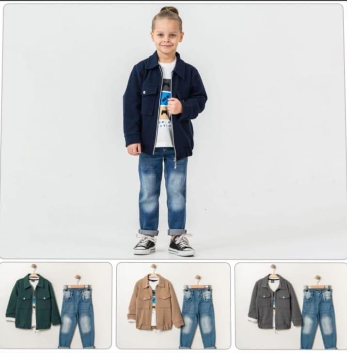 Ensemble 3 pièces : veste + body avec manches longues en coton + pantalon jean