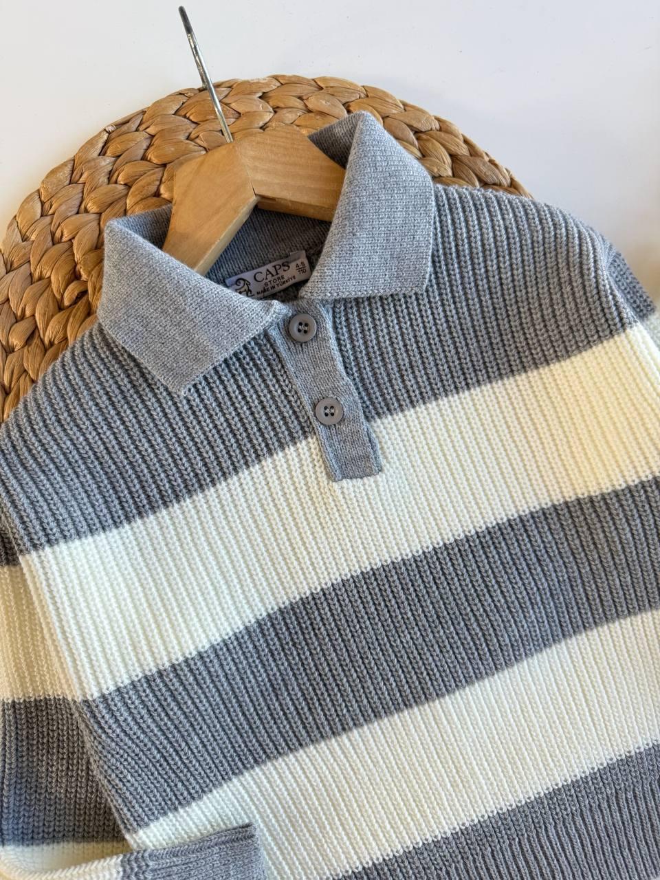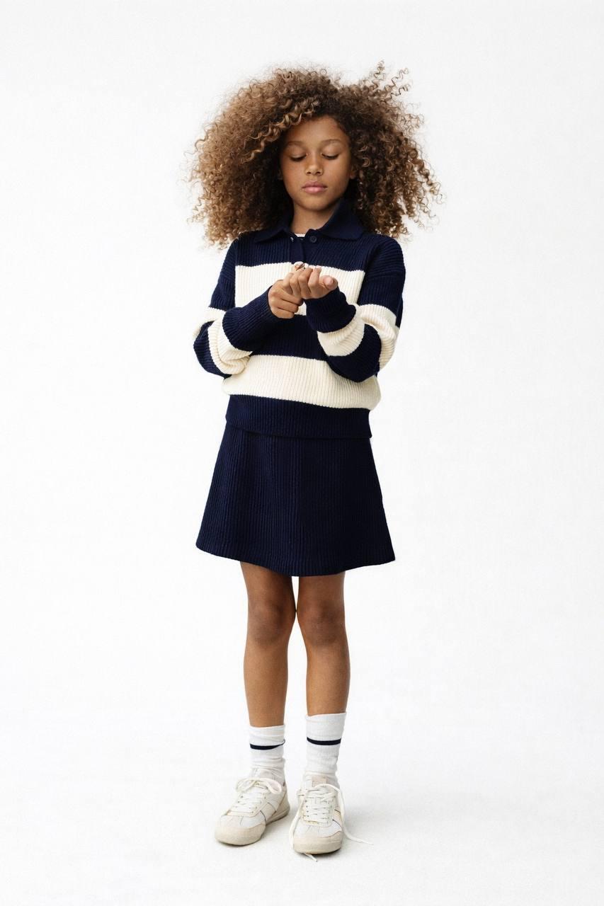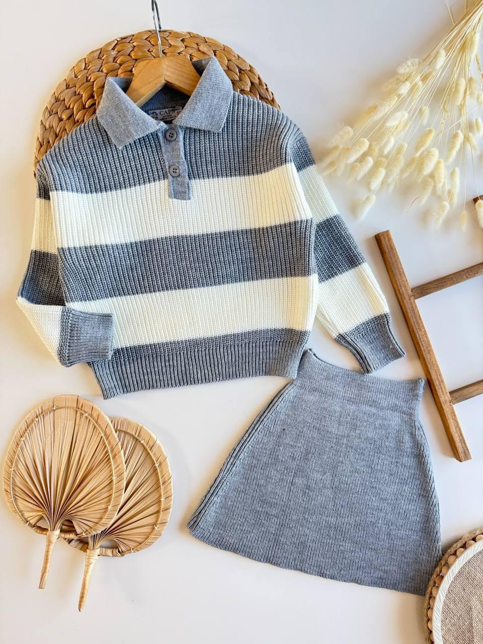 pull col chemisier avec rayures et jupe simple