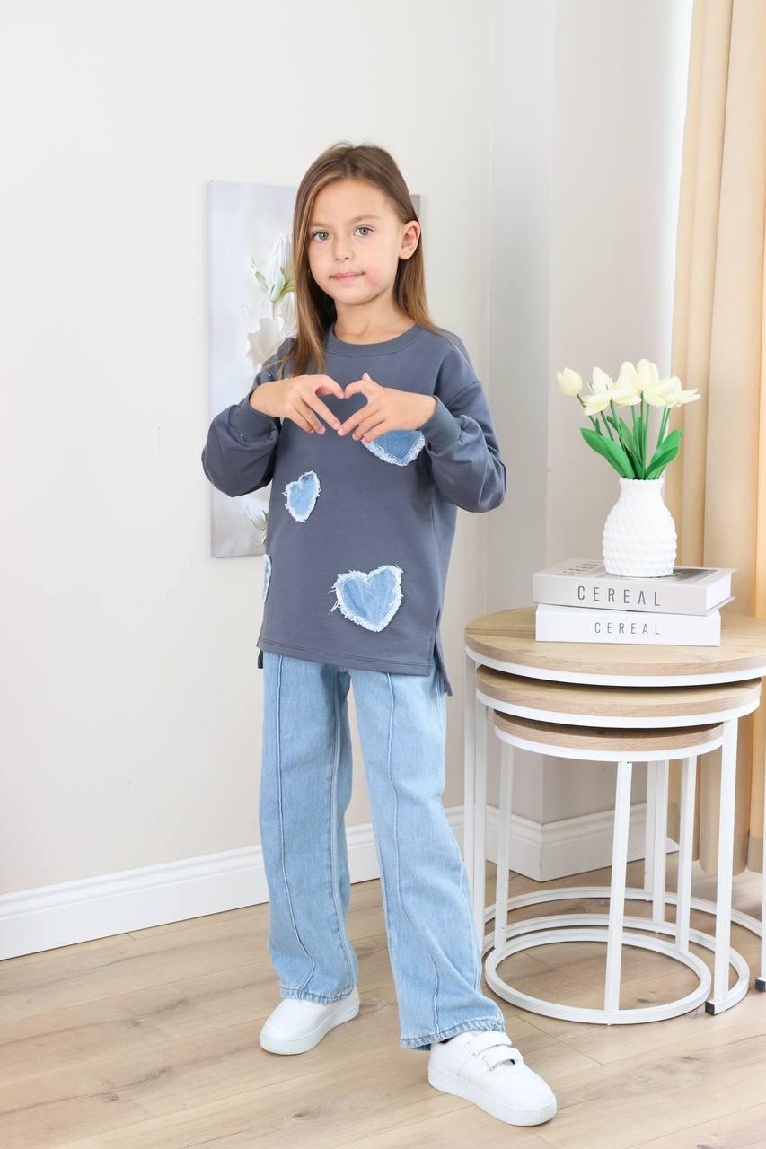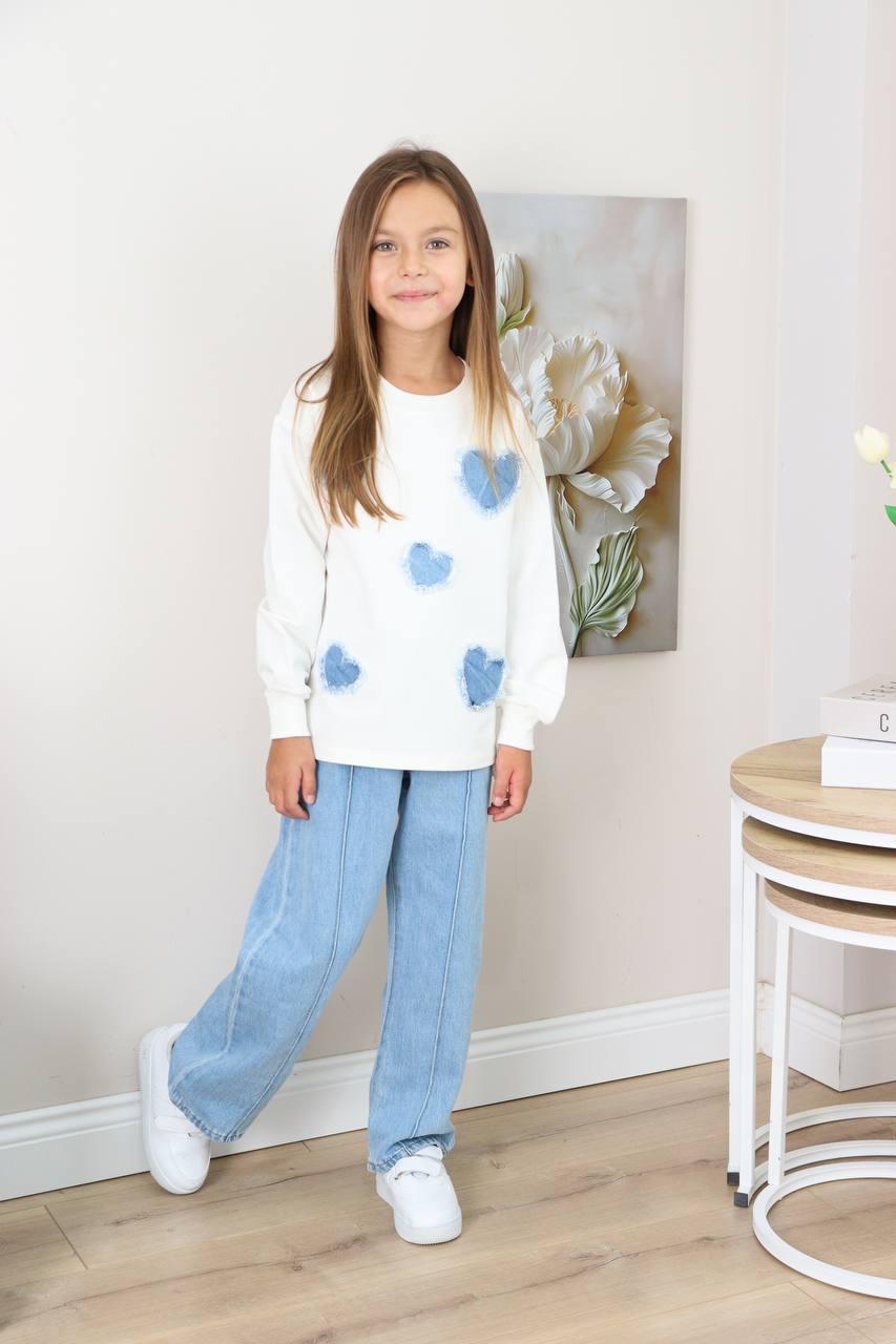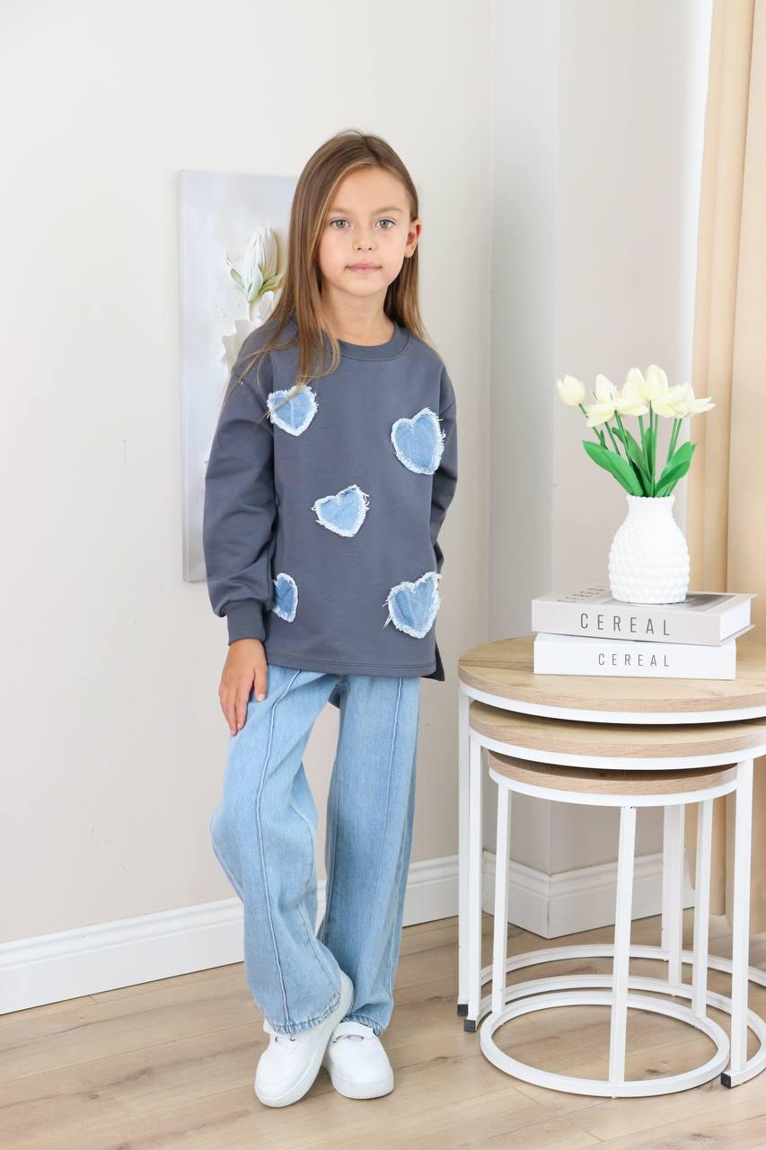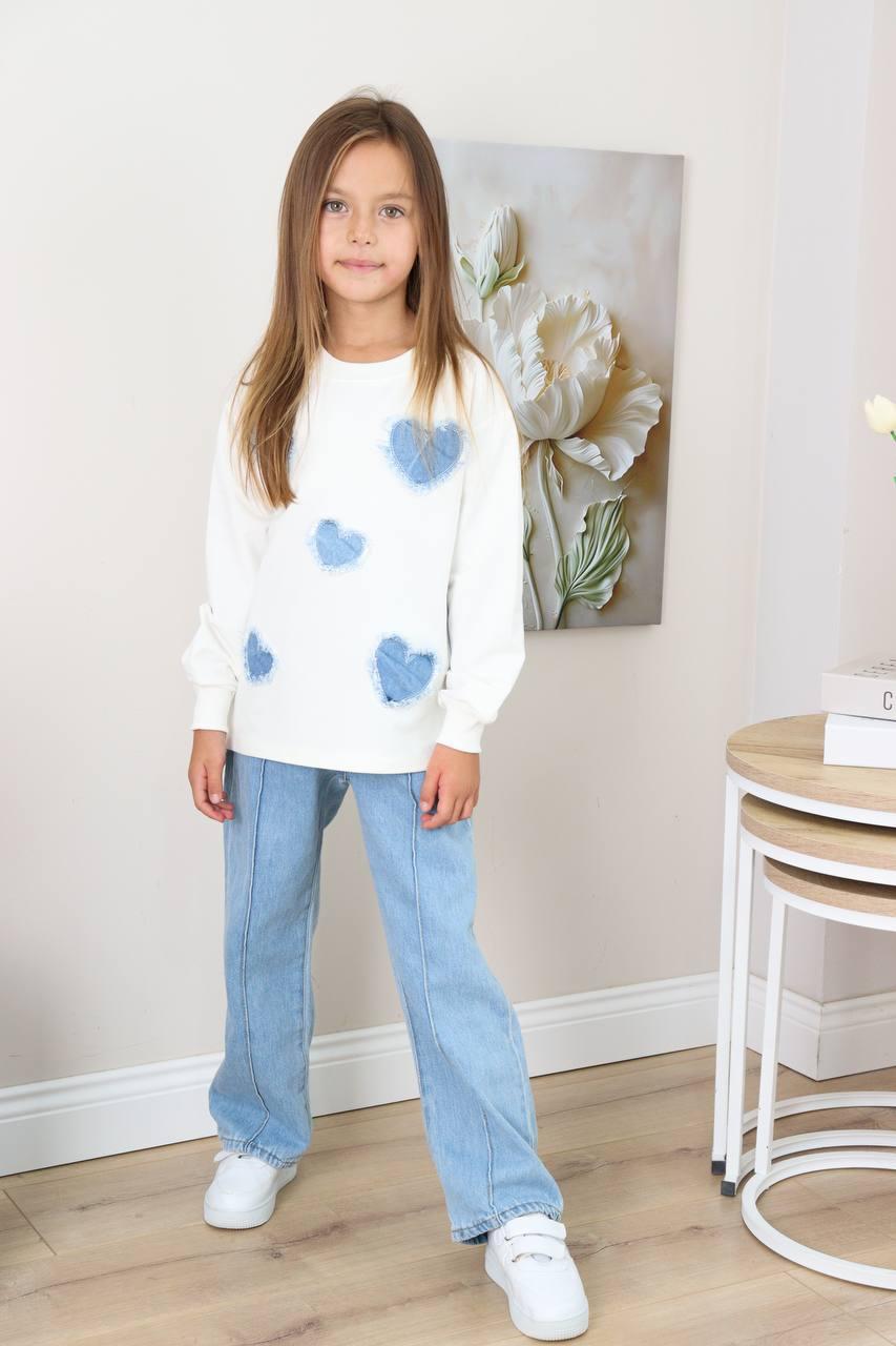 Pull en coton avec motif cœur et pantalon jean large