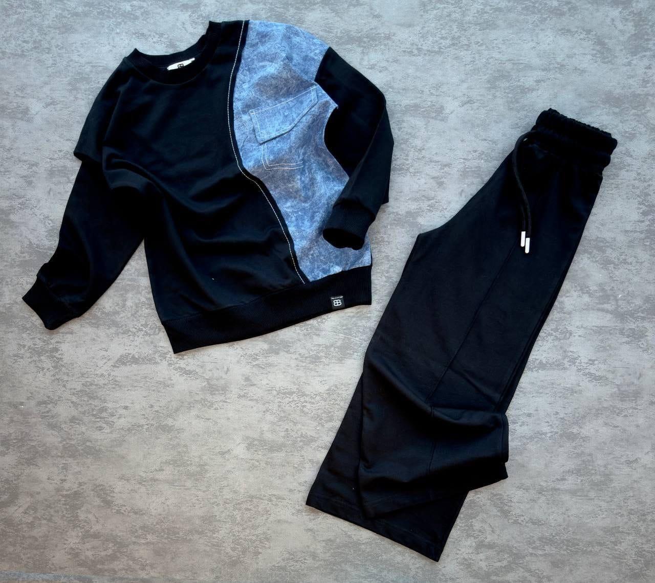 pull simple en coton avec poche en denim