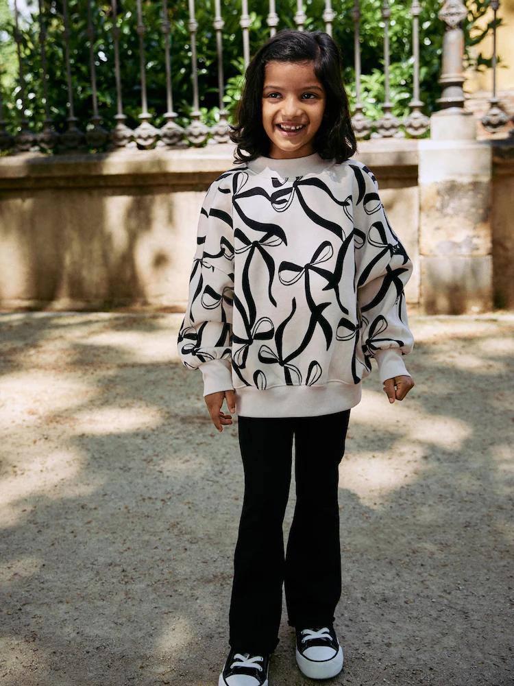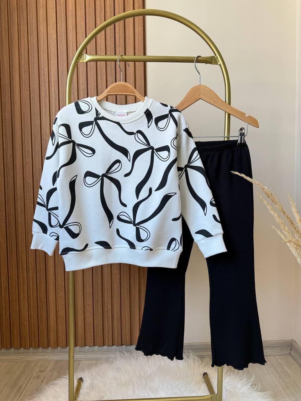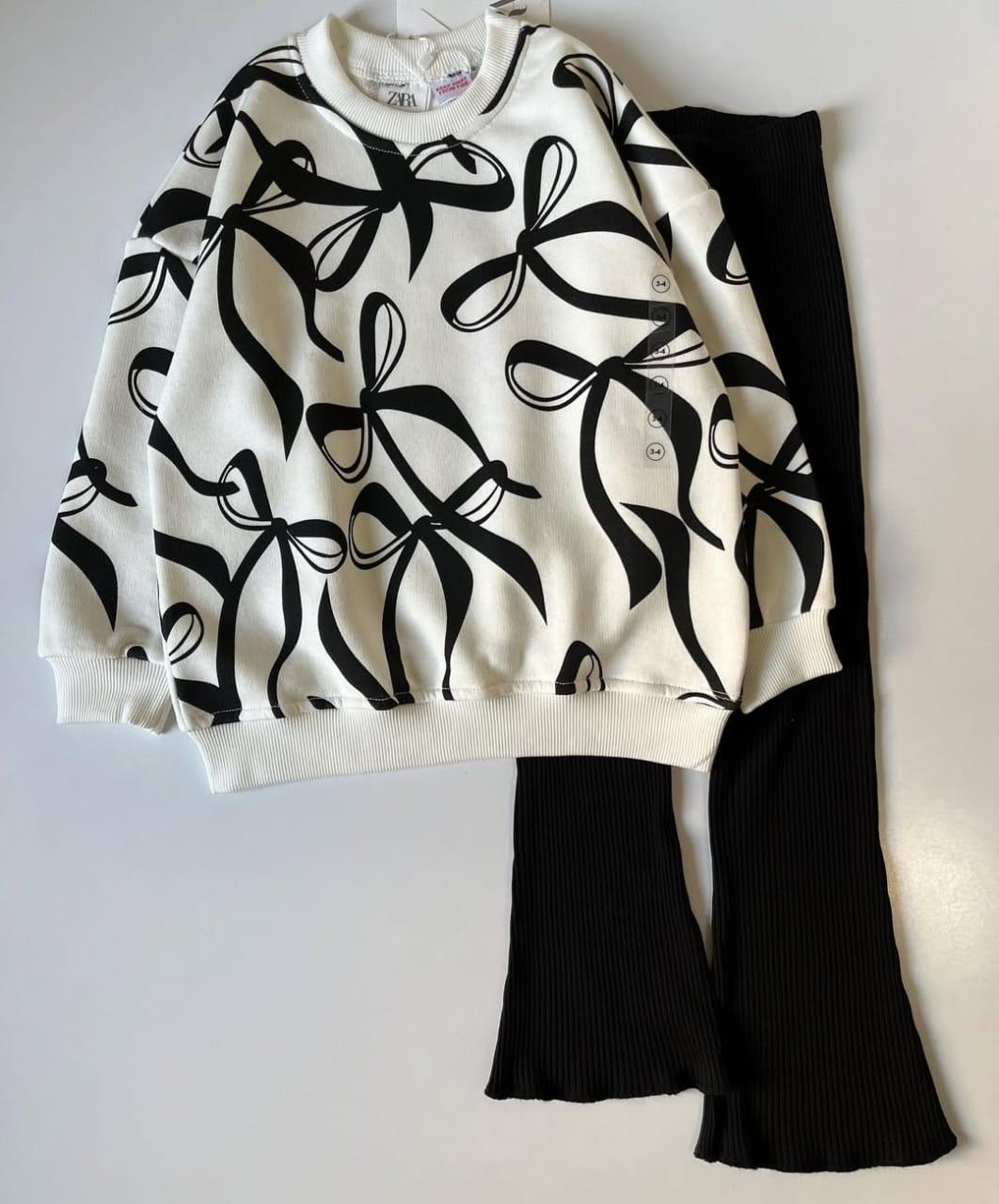 Pull blanc imprimé papillon noir avec pantalon patte d'éléphant en coton